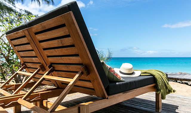 Soak up the sun for a day on the beach on a sunbed.